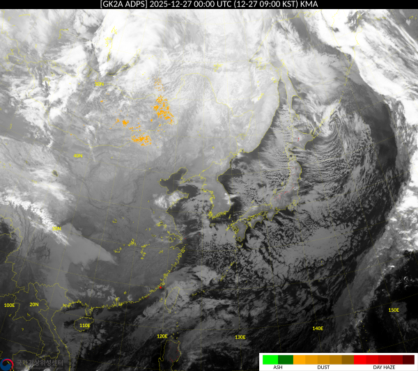 - 2025-12-27 10:00:00 o 강풍주의보 : 강원도(속초평지) o 풍랑주의보 : 동해남부남쪽안쪽먼바다, 동해남부남쪽바깥먼바다, 동해남부북쪽안쪽먼바다, 동해남부북쪽바깥먼바다, 동해중부안쪽먼바다, 동해중부바깥먼바다 o 대설주의보 : 충청남도(태안) o 건조주의보 : 강원도(강릉평지, 동해평지, 삼척평지, 속초평지, 고성평지, 양양평지, 강원남부산지), 경상북도(영덕, 울진평지, 포항, 경주, 경북북동산지), 경상남도(창원, 김해), 부산, 울산